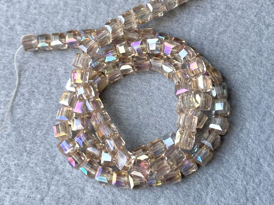 Кришталеві намистини, грановані. Розмір: 6*6мм, отвір: 1мм. Форма кубик. У нитці: 100+-2шт. Ціна за 1 нитку.