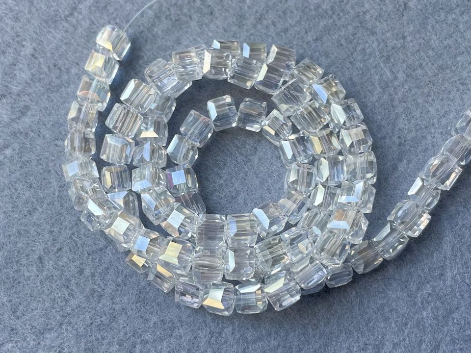 Кришталеві намистини, грановані. Розмір: 6*6мм, отвір: 1мм. Форма кубик. У нитці: 100+-2шт. Ціна за 1 нитку.