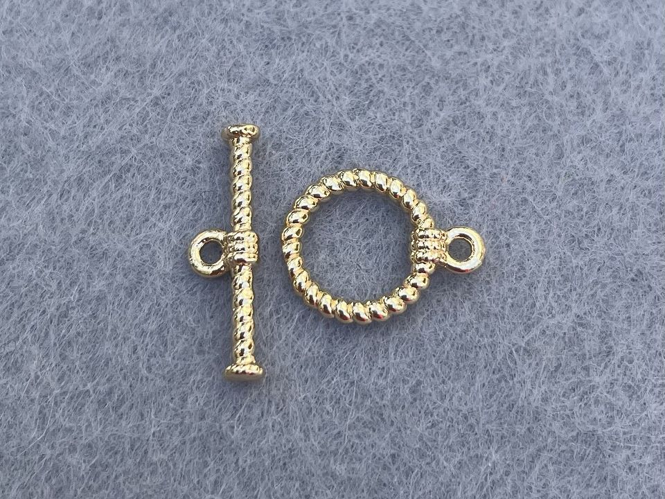 Тогл - популярна фурнітура для прикрас. Застібка надійно фіксує дві сторони виробу. Тогл виготовлений із якісного сплаву стійкого до зовнішніх факторів. Він є універсальною застібкою, оскільки підходить для різноманітних виробів: намист, кольє, браслетів.