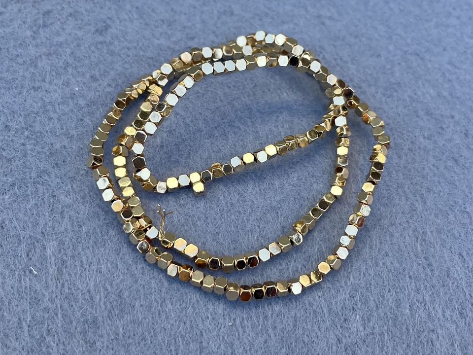 Гематит - натуральний, гладкий. Розмір намистини: 2*2 мм. Кількість намистин на нитці: 183 (+-2шт). Отвір: 1мм. Колір – рожеве золото. Ціна за нитку.
