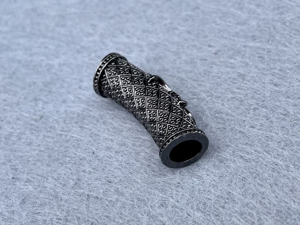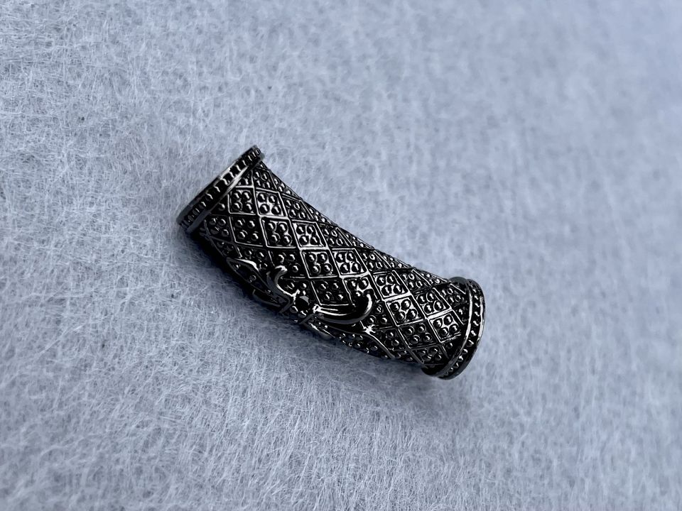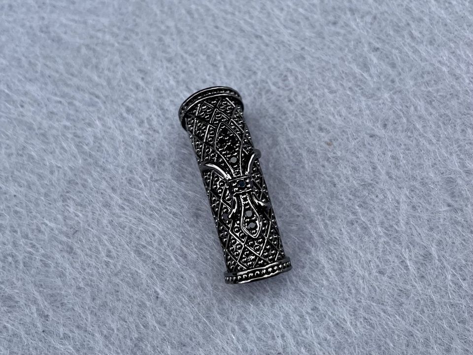 Намисто- трубочка інкрустована Кубічним цирконієм. Покриття родій. Колір чорний . Розмір: 10*28 мм, отвір 6 мм. Ціна за 1шт
