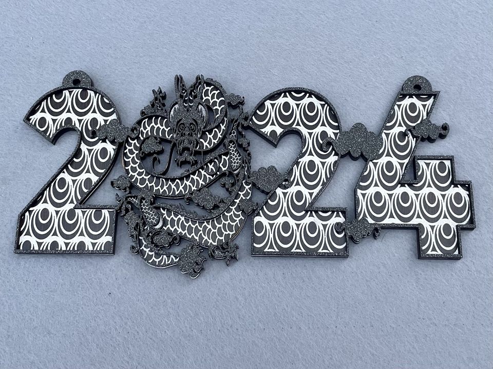 Декор із фанери. Символ нового року 2024 року. Розмір: 12,5*30 см, має дві петельки для підвішування. Ціна за шт.