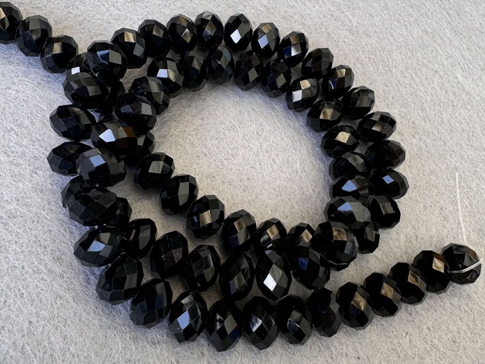 Кришталеві намистини, грановані. Розмір: 10 * 8 мм, отвір: 1,5 мм. Форма: рондель, сфера (еліпсоїд). У нитці: 70+-2шт. Ціна за 1 нитку.