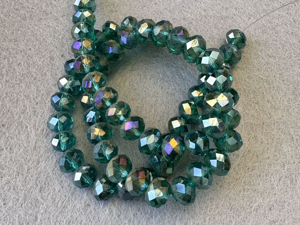 Кришталеві намистини, грановані. Розмір: 10 * 8 мм, отвір: 1,5 мм. Форма: рондель, сфера (еліпсоїд). У нитці: 70+-2шт. Ціна за 1 нитку.