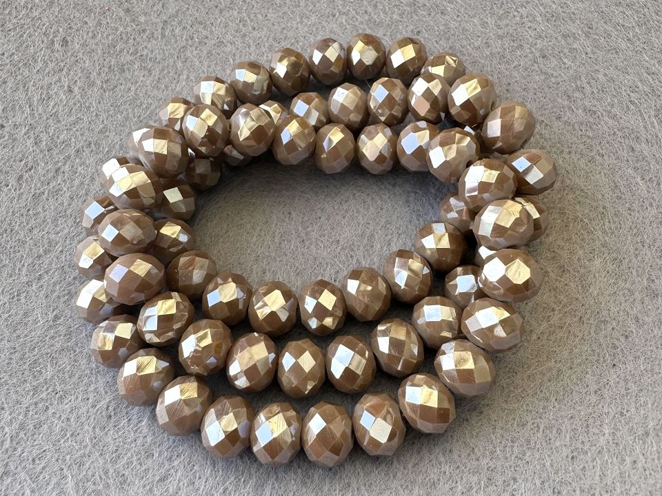 Кришталеві намистини, грановані. Розмір: 10 * 8 мм, отвір: 1,5 мм. Форма: рондель, сфера (еліпсоїд). У нитці: 70+-2шт. Ціна за 1 нитку.