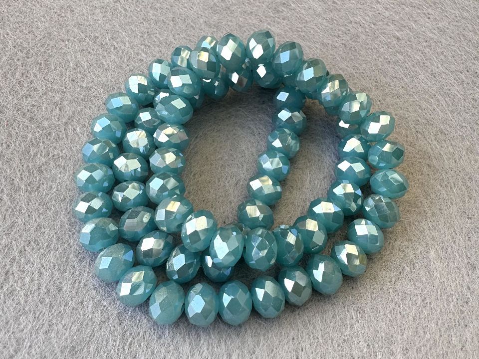 Кришталеві намистини, грановані. Розмір: 10 * 8 мм, отвір: 1,5 мм. Форма: рондель, сфера (еліпсоїд). У нитці: 70+-2шт. Ціна за 1 нитку.