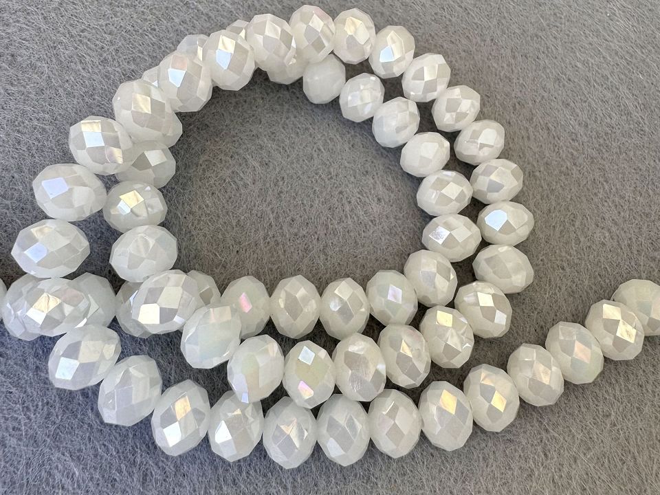 Кришталеві намистини, грановані. Розмір: 10 * 8 мм, отвір: 1,5 мм. Форма: рондель, сфера (еліпсоїд). У нитці: 70+-2шт. Ціна за 1 нитку.