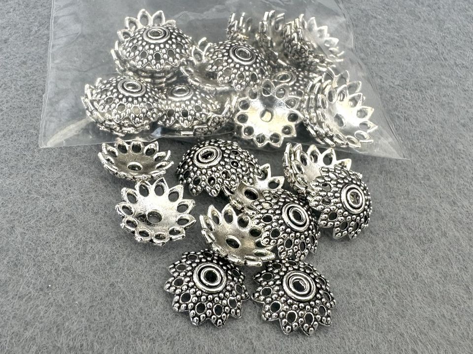 Шапочка металева, лита для намистин. Колір: сталь Діаметр: 12 мм, висота шапочки: 3 мм Ціна за упаковку: 20 грам