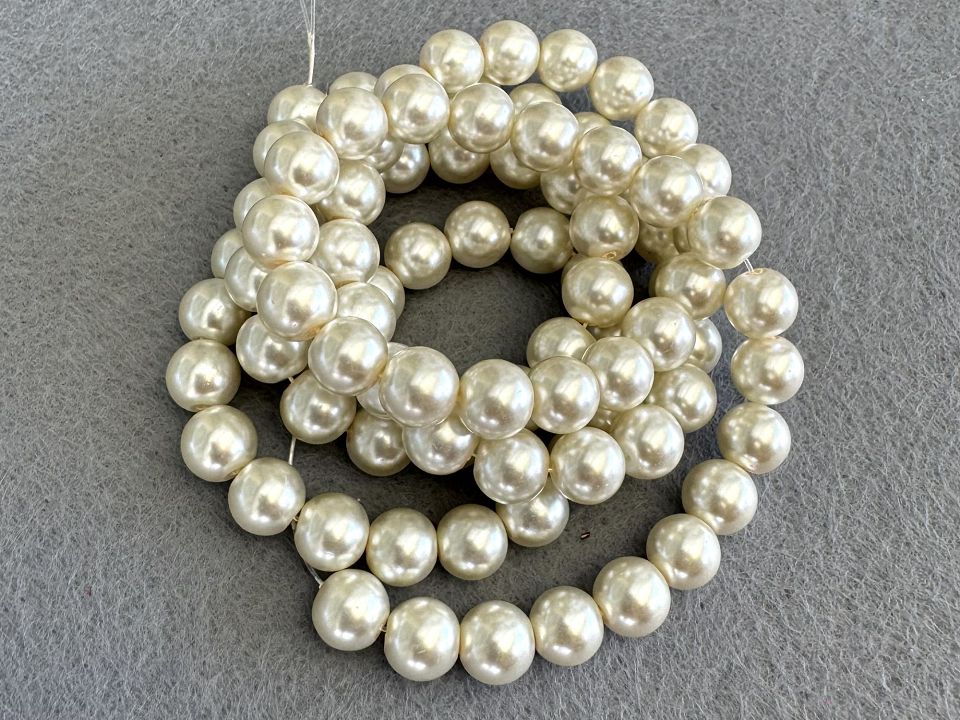 Перли керамічні. Розмір: 10 мм, отвір: 1 мм; Кількість на нитці – 86 ± 2 намистин. Колір – світло молочний Ціна за нитку.