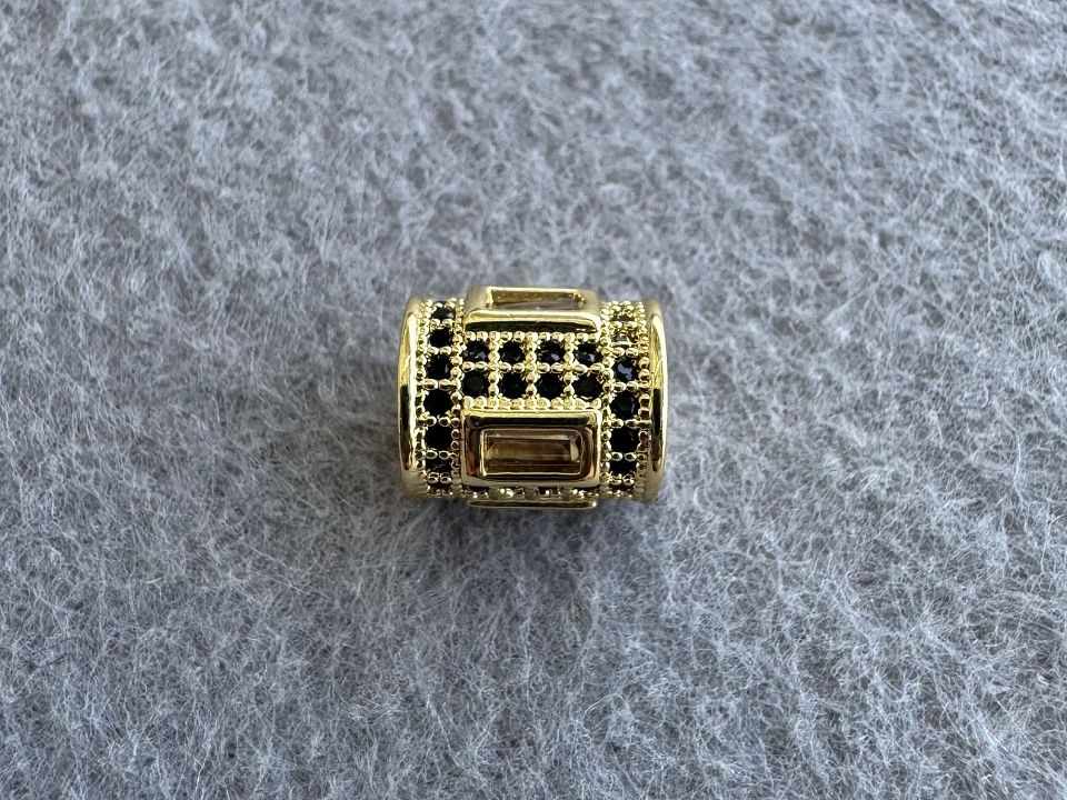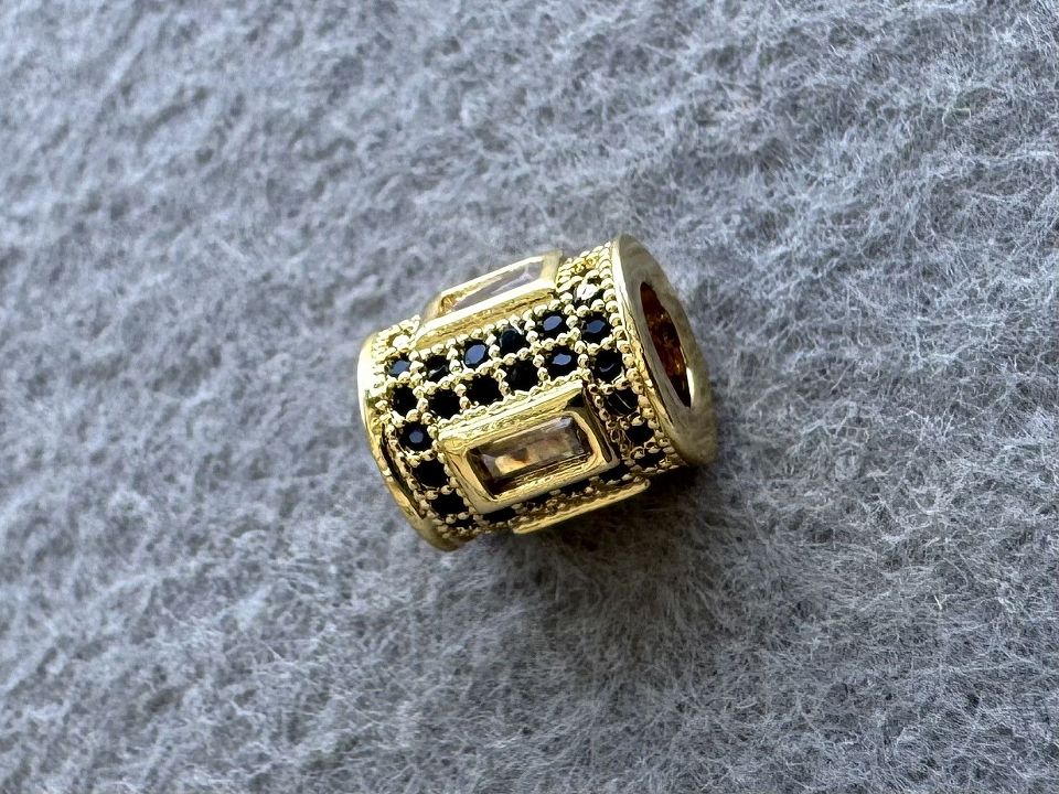 Бусина інкрустована Кубічним цирконієм (також називаються намистинами з фіанітами). Покриття родій. Колір – золото. Розмір: 10*8 мм, отвір - 4 мм. Ціна за 1 шт