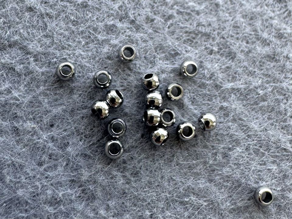 Намистини для біжутерії з нержавіючої сталі. Колір – сталь. Діаметр: 2мм. Отвір – 1мм. Ціна за 50 шт