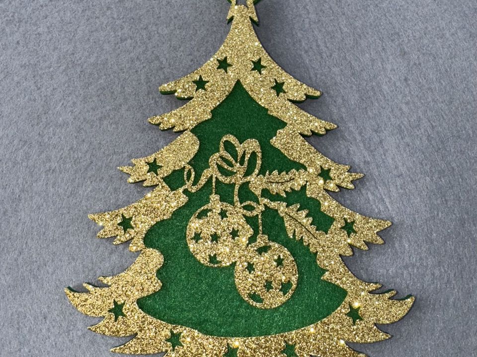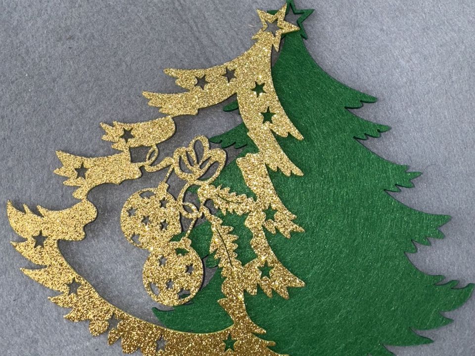 Аплікація з фетру та глітерного фома <Ялинка>. Розміри: 14*17см, товщина фетру -2мм, фом -2мм. Набір не склеїн, тому можна використовувати як разом так і окремо.
