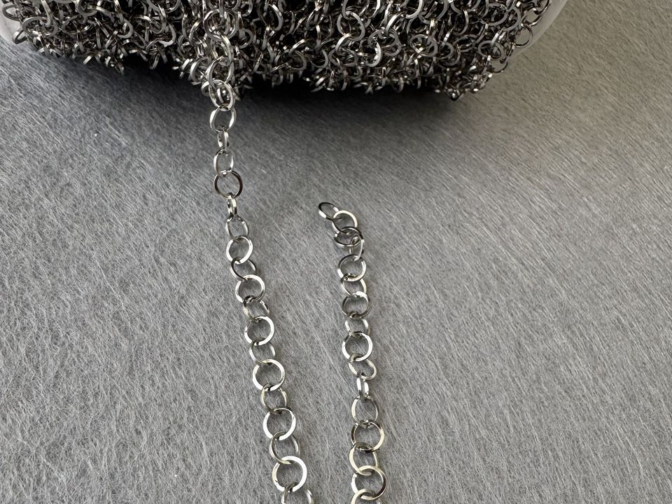 Ланцюг виготовлена з нержавіючої сталі. Розмір ланки 5,5 мм. Ланка плоска,не розʼємна. Ціна вказана за 1 метр. Такий ланцюжок стане відмінною основою для браслета або прикраси на шию. Комбінуючи її з великими ланцюгами, підвісками і оригінальними застібками ви створите стильні аксесуари. Така фурнітура не тільки красиво виглядає, але і довговічна.