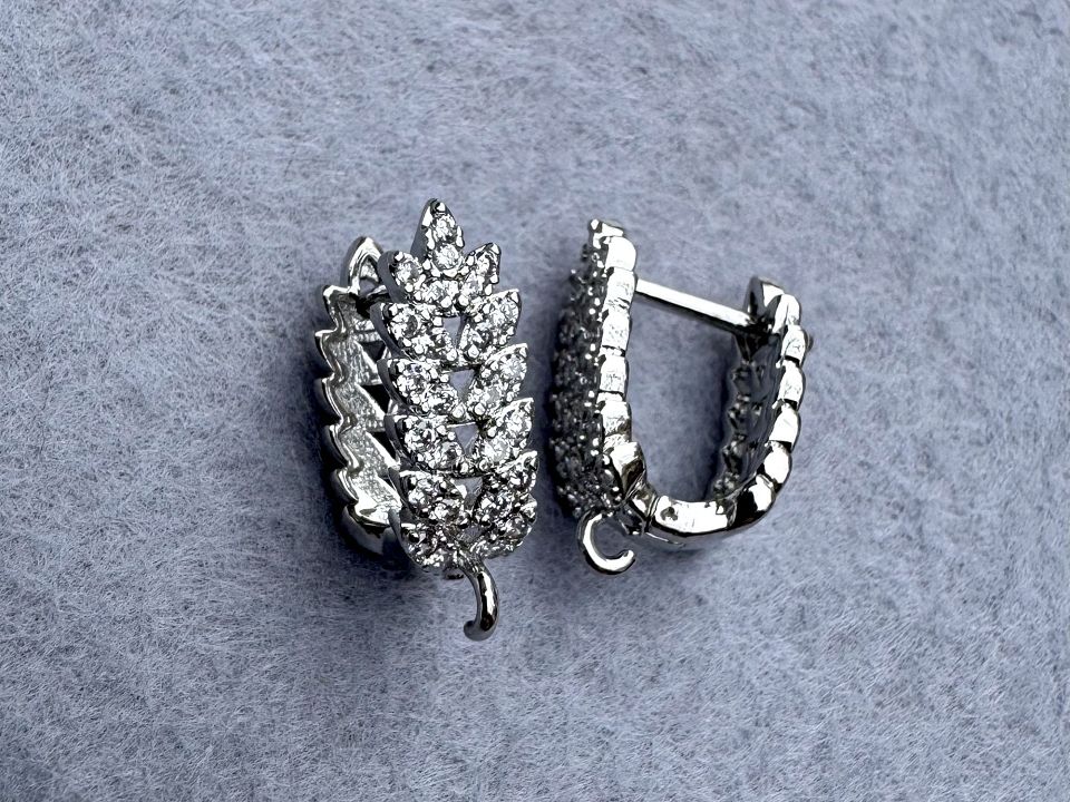 Швенза Milano, йде з роз'ємною петелькою для підвісів. Покриття родій із інкрустацією фіанітами. Розмір: 17*6 мм. Ціна за пару