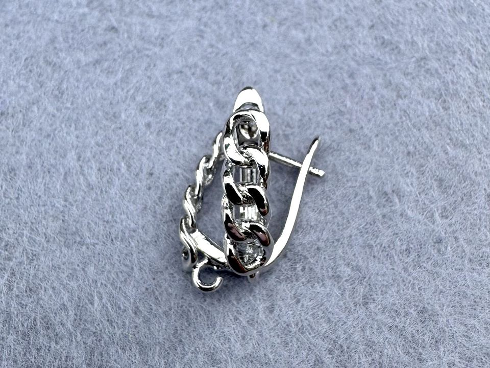 Швенза Milano з англійським замком, йде з роз'ємною петелькою. Покриття родій. Розмір: 17 х 5 мм. Ціна за пару