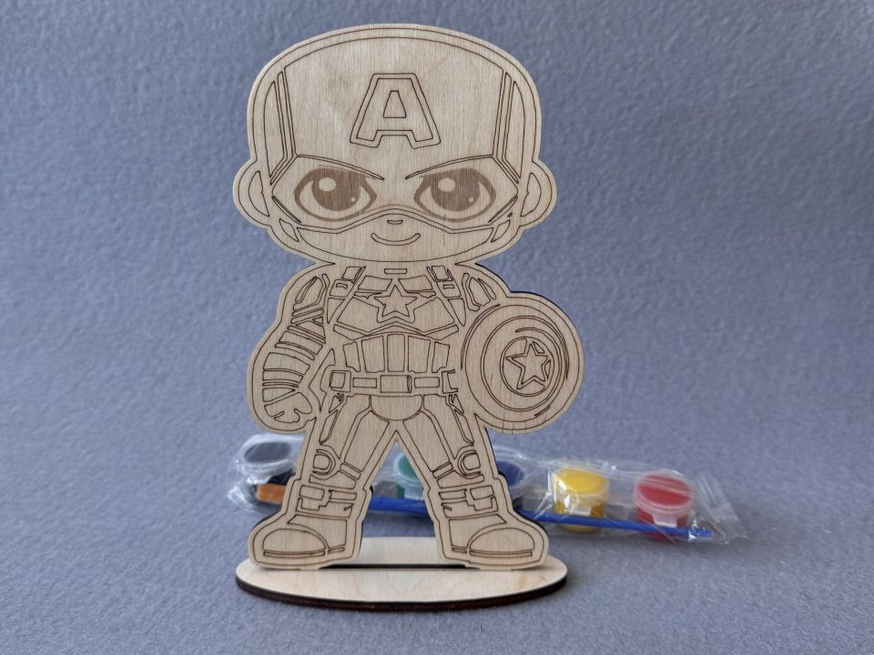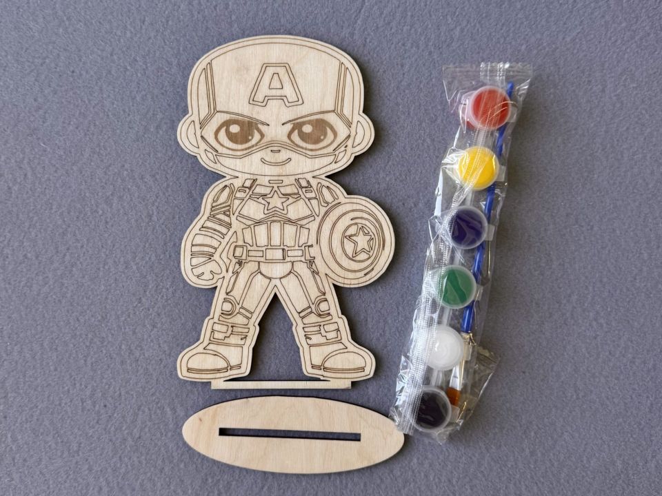 Розмальовки у формі улюблених героїв обов'язково зацікавлять дитину. У комплекті йде пензель та фарби. Розмальовуючи дерев'яне забарвлення, малюк отримає задоволення від творчого процесу та гарний сувенір, зроблений своїми руками. Розмальовка виконана з фанери на підставці. Розмір готового виробу (~12 x 18 см) Ціна за 1 набір.