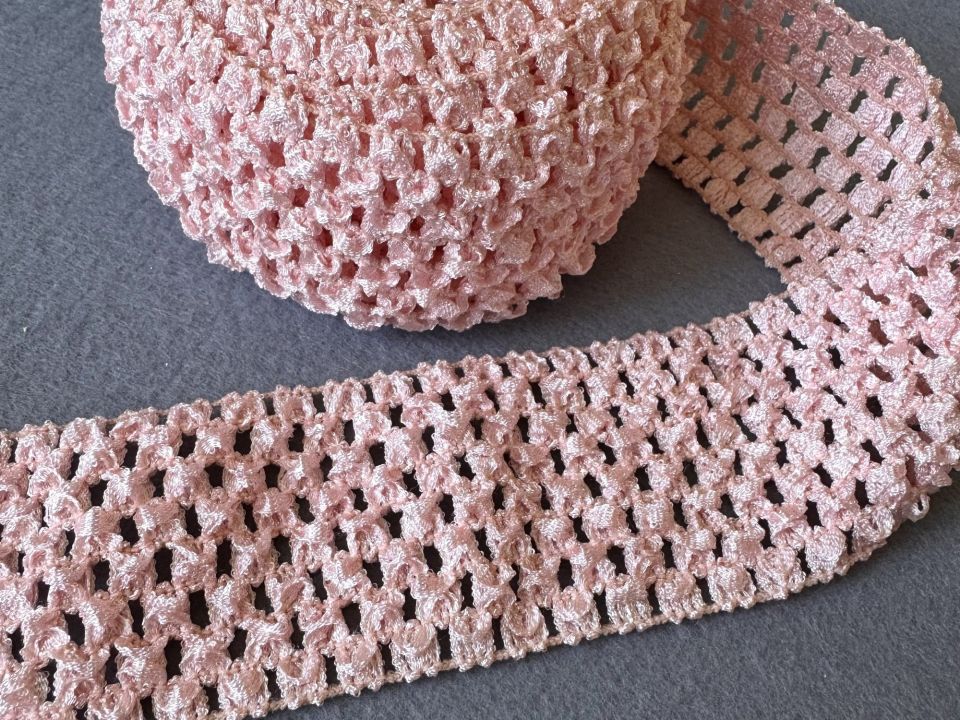 Ажурна гумка дитяча. Ширина 6 см. Ціна за моток – 10 метрів. Використовується для дитячих пов'язок на голову та одяг. Колір - персиковий.