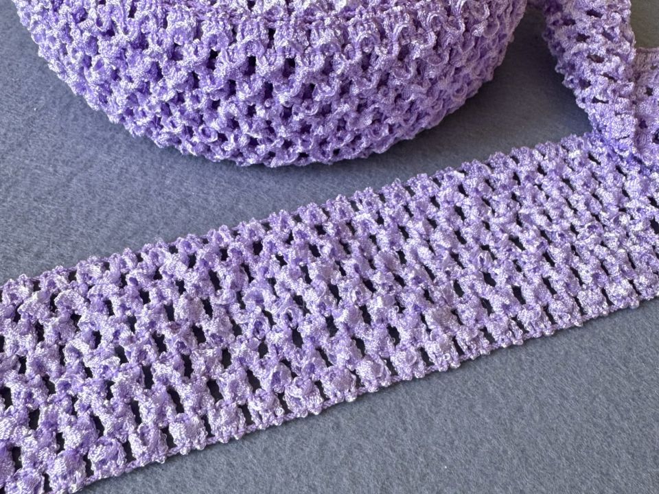 Ажурна гумка дитяча. Ширина 6 см. Ціна за моток – 10 метрів. Використовується для дитячих пов'язок на голову та одяг. Колір -бузьковий.
