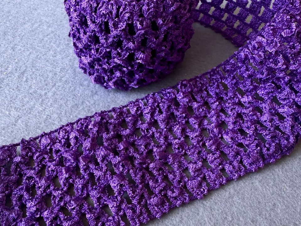 Ажурна гумка дитяча. Ширина 6 см. Ціна за моток – 10 метрів. Використовується для дитячих пов'язок на голову та одяг. Колір - фіолетовий.
