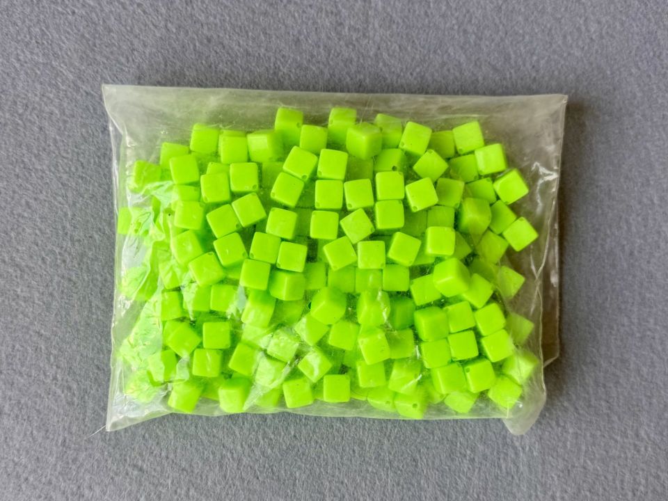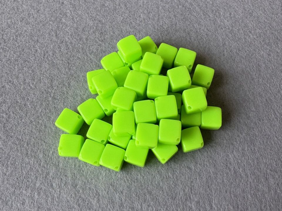 Намистини пластикові - Куб. Розмір – 10 * 10*10 мм. Отвір навскоси, з кутка в куток - 2мм. Ціна за упаковку - 0,250 кг (240+-5шт)
