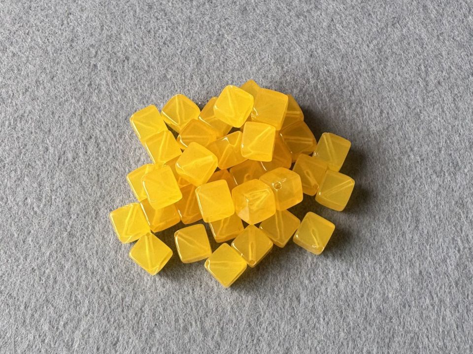 Намистини пластикові - Куб. Розмір – 10 * 10*10 мм. Отвір навскоси, з кутка в куток - 2мм. Ціна за упаковку - 0,250 кг (240+-5шт)