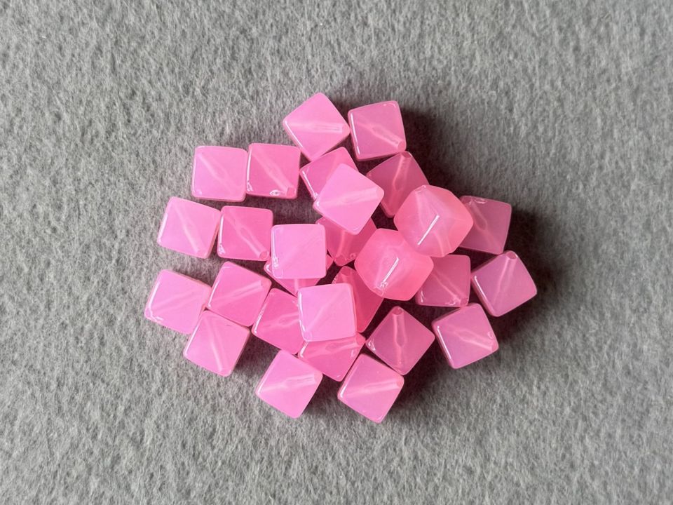 Намистини пластикові - Куб. Розмір – 10 * 10*10 мм. Отвір навскоси, з кутка в куток - 2мм. Ціна за упаковку - 0,250 кг (240+-5шт)