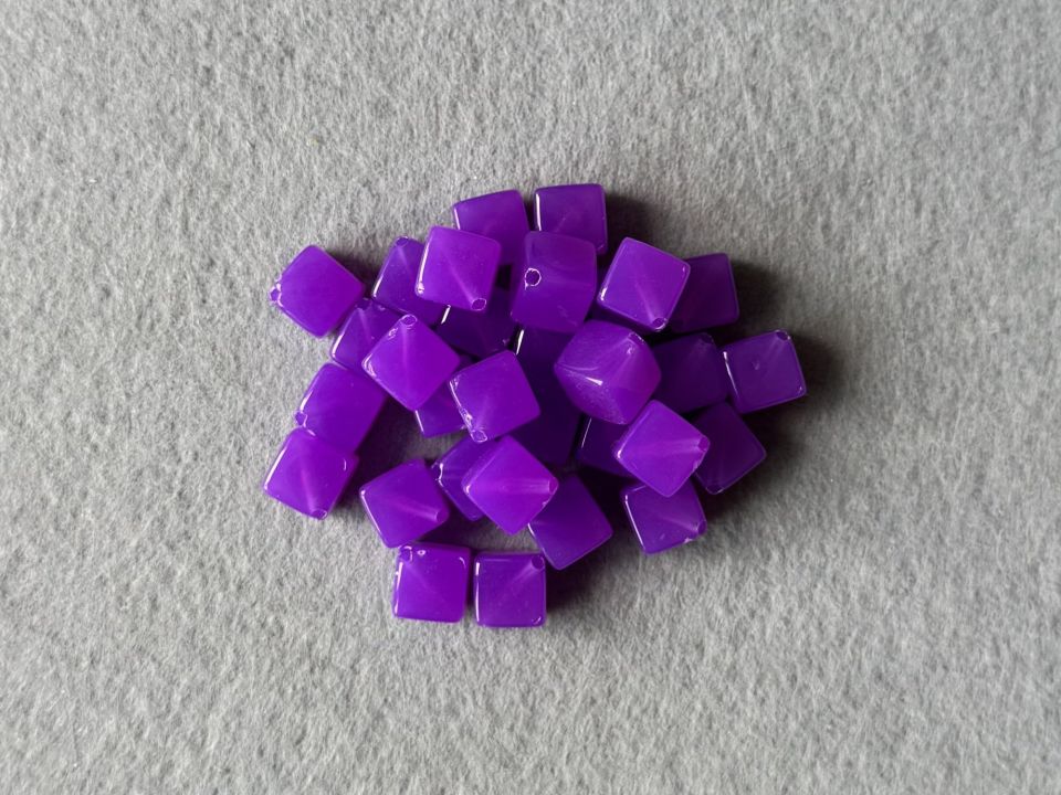 Намистини пластикові - Куб. Розмір – 10 * 10*10 мм. Отвір навскоси, з кутка в куток - 2мм. Ціна за упаковку - 0,250 кг (240+-5шт)
