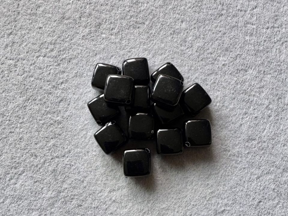 Намистини пластикові - Куб. Розмір – 13 * 13*13 мм. Отвір навскоси, з кутка в куток - 2мм. Ціна за упаковку - 0,250 кг (100+-5шт)