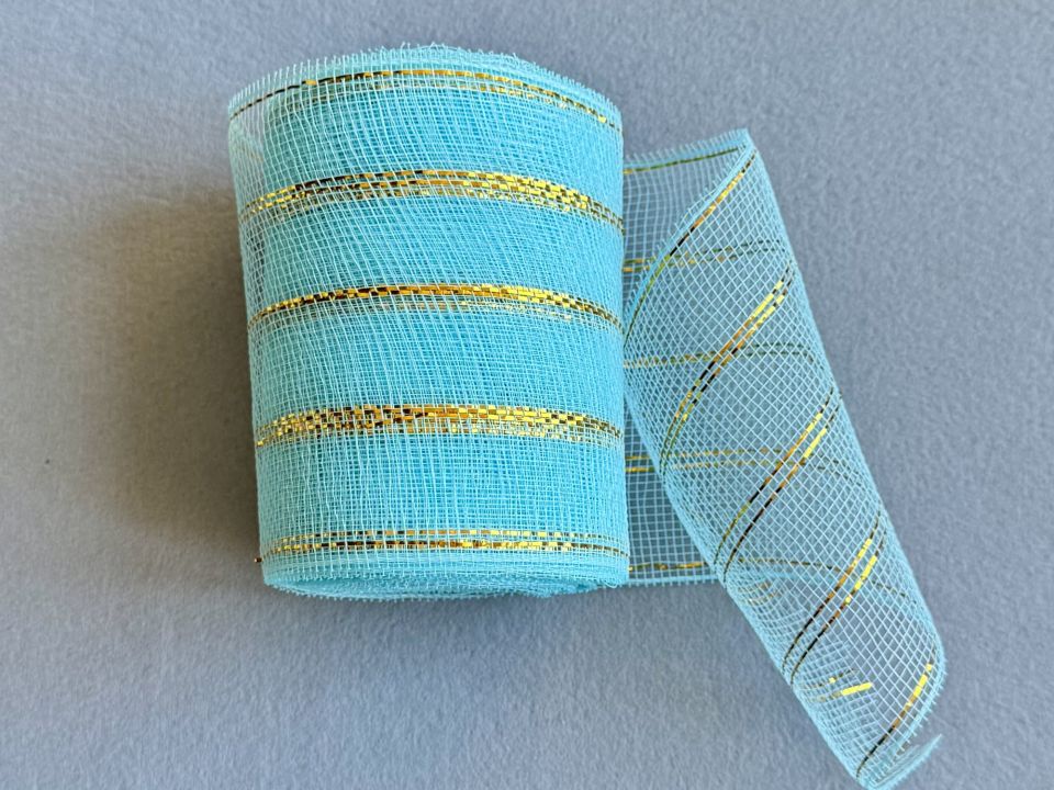 Фатин жорсткий з люрексом . В рулончику, ширина 15 см. Ціна вказана за 1 рулон - (30 ярдів ) - 27 метри. Виготовлення бантиків, гірлянд, пакування подарунків. Декор вінків, ялинкових композицій і святкового столу. Створення об'ємних виробів і прикрас. Легко ріжеться, комбінується з іншими матеріалами і надає виробам стильного святкового вигляду.