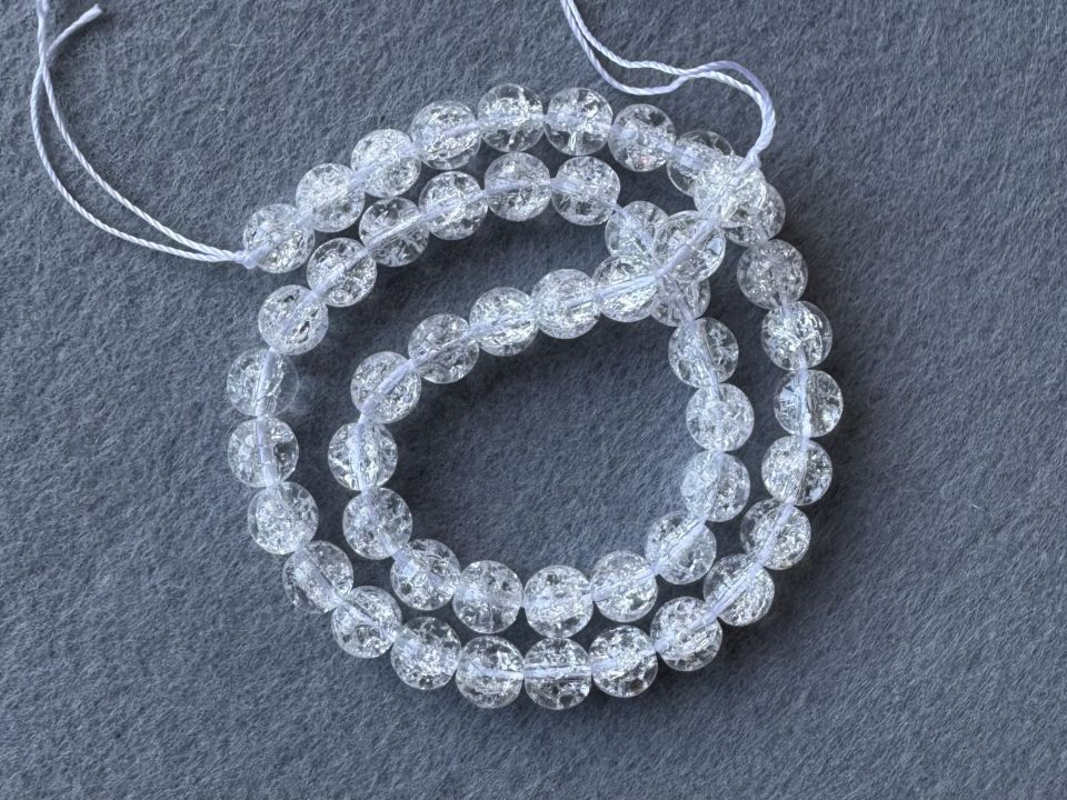 Гірський кришталь, гладкий. Розмір намистини: 8 мм. Кількість намистин на нитці: 50 (+-2шт). Отвір каменю: 1мм. Ціна за нитку (без замка). Довжина нитки: 38 см