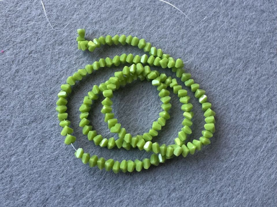 Кришталеві намистини, грановані. Розмір: 4*3 мм. Форма: трикутник. У нитці: 142+-3шт. Ціна за 1 нитку.