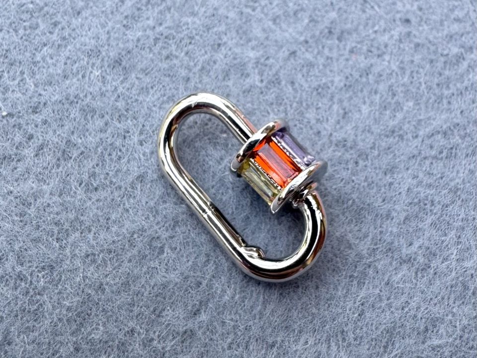 Родований замочок для біжутерії "Овал", з інкрустацією фіанітами. Розмір: 12*20 мм. Колір-сталь. Якісна фурнітура класу Люкс. Ціна вказана на одну штуку. Застібка, що закручується, - незамінна фурнітура для важких прикрас. Вона надійно фіксує масивне кольє з ланцюгів або намисто з натурального каміння. Застібка карабін ідеально підійде для створення прикрас на шию. Застібка з металу, що закручується, використовується не тільки для біжутерії, але і при виготовленні брелоків, сумок і як декоративний елемент.
