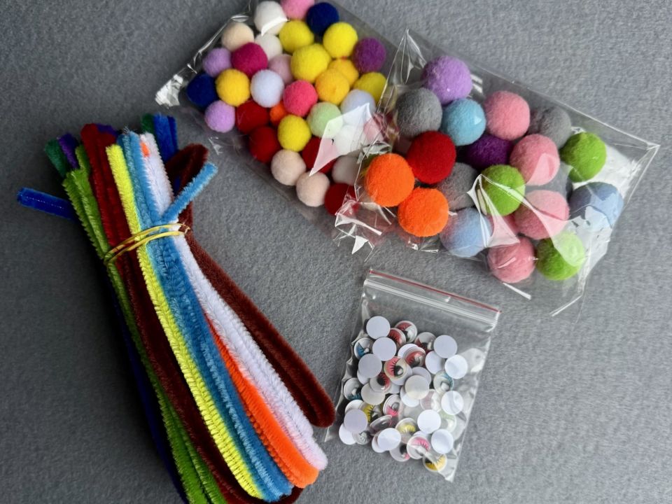 Набір для рукоділля. У набір входить: Синельний дріт асорті-50 шт. Очі для іграшок - 25 пар. Текстильні кульки – 1,5 см -40шт. Текстильні кульки – 2 см – 20 шт Ціна за 1 набір