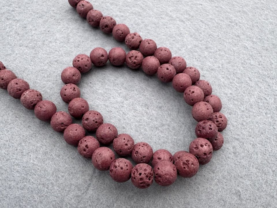 Вулканіт (вулканічна лава). Розмір намистини: 8мм. Кількість намистин на нитці: 48 (+-2шт). Отвір каменю: 1мм. Ціна за нитку (без замку). Довжина нитки: 38 см