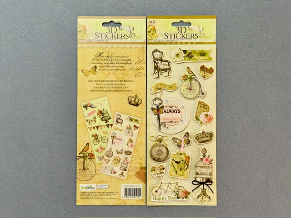 Набір різнокольорових 3D стікерів розміром 11*29 см. Прекрасно підійде для оформлення робіт у техніці скрапбукінгу: тематичних альбомів, скрап-сторінок, подарунків, фоторамок або листівок. Стікери мають різний дизайн, виготовлені з тонкого картону, закріплені клейовою подушечкою на наклейці-основі, достатньо відклеїти наклейку від листа та розмістити на своїй роботі. Ваша робота набуде нових барвистих акцентів. Ціна за 1 уп