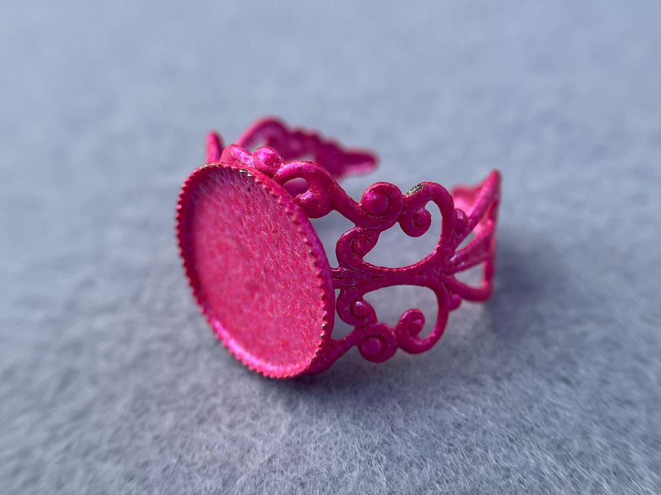 Основа для кільця з металевого сплаву з основою та бортиком. Основа: 14мм. Діаметр кільця: 17мм і збільшується на пару розмірів. Колір: фарбований, ціна за 1шт.
