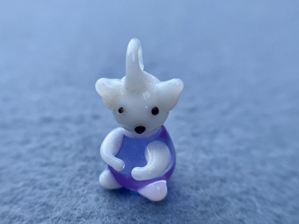 Скляна підвіска-кулон у формі ведмедика, ручної роботи. Виконана в техніці Лемпворк (Lampwork). Розмір: 1,5 * 3см. Може використовуватися як підвіска на браслети або кулон на шнурок для шиї. Ціна за шт.