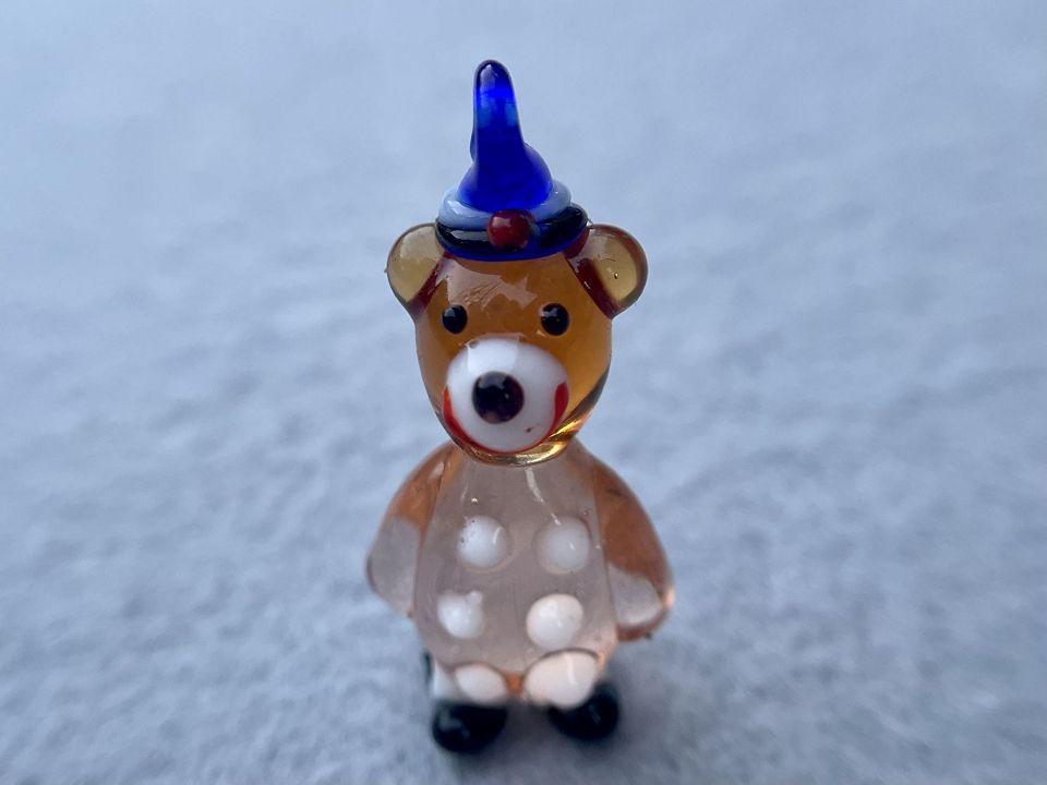 Скляна підвіска-кулон у формі ведмедика, ручної роботи. Виконана в техніці Лемпворк (Lampwork). Розмір: 1,5 * 3,5см. Може використовуватися як підвіска на браслети або кулон на шнурок для шиї. Ціна за шт.