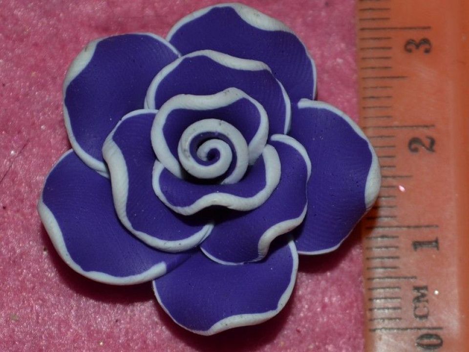 Намистини з полімерної глини. Форма: об'ємна троянда. Розмір намистини: 3 см, отвір: 1 * 1.5 мм. Ціна вказана за 1 шт. Квітку можна нанизати на основу для браслета або приклеїти на основу для кілець. Так як це намистини ручної роботи, то розмір може варіюватися + -1 мм