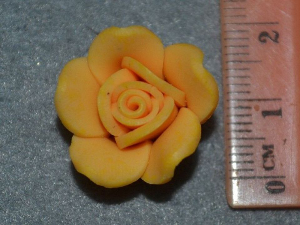 Намистини з полімерної глини. Форма: об'ємна троянда. Розмір намистини 2см, отвір: 1 * 1.5 мм. Ціна вказана за 1 упаковку-15шт. Квітку можна нанизати на основу для браслета або приклеїти на основу для кілець. Так як це намистини ручної роботи, то розмір може варіюватися: -1 мм