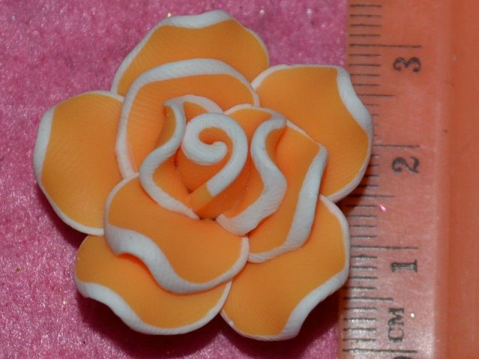 Намистини з полімерної глини. Форма: об'ємна троянда. Розмір намистини: 3 см, отвір: 1 * 1.5 мм. Ціна вказана за 1 шт. Квітку можна нанизати на основу для браслета або приклеїти на основу для кілець. Так як це намистини ручної роботи, то розмір може варіюватися + -1 мм