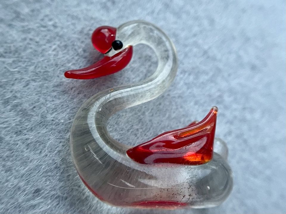 Скляна підвіска-кулон у формі лебедя, ручної роботи. Виконана в техніці Лемпворк (Lampwork). Розмір: 2,5 * 3см. Може використовуватися як підвіска на браслети або кулон на шнурок для шиї. Ціна за шт.