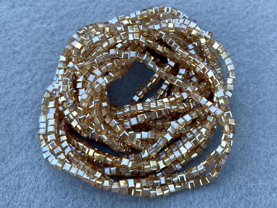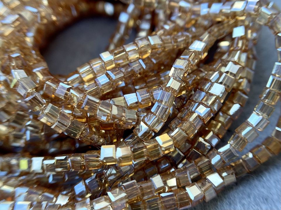 Кришталеві намистини, грановані. Розмір: 2мм, отвір: 0,8мм. Форма кубик. У нитці: 190+-5шт. Ціна за 1 нитку.