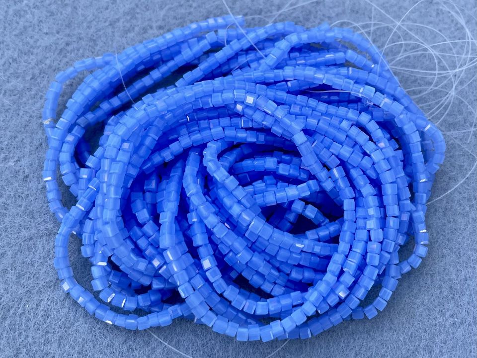 Кришталеві намистини, грановані. Розмір: 2мм, отвір: 0,8мм. Форма кубик. У нитці: 190+-5шт. Ціна за 1 нитку.