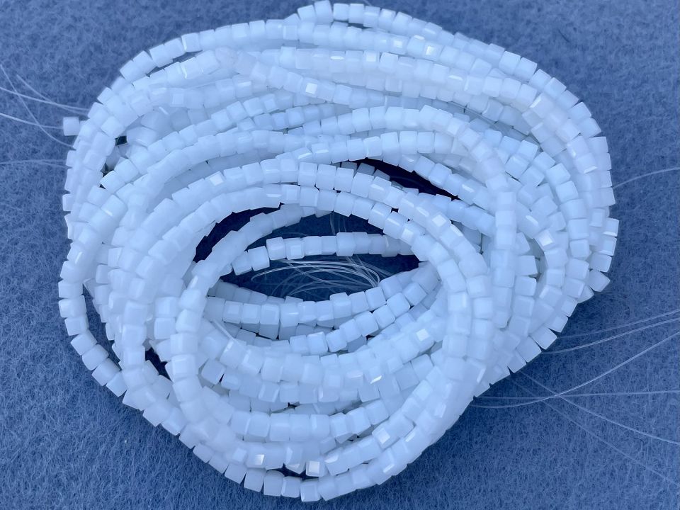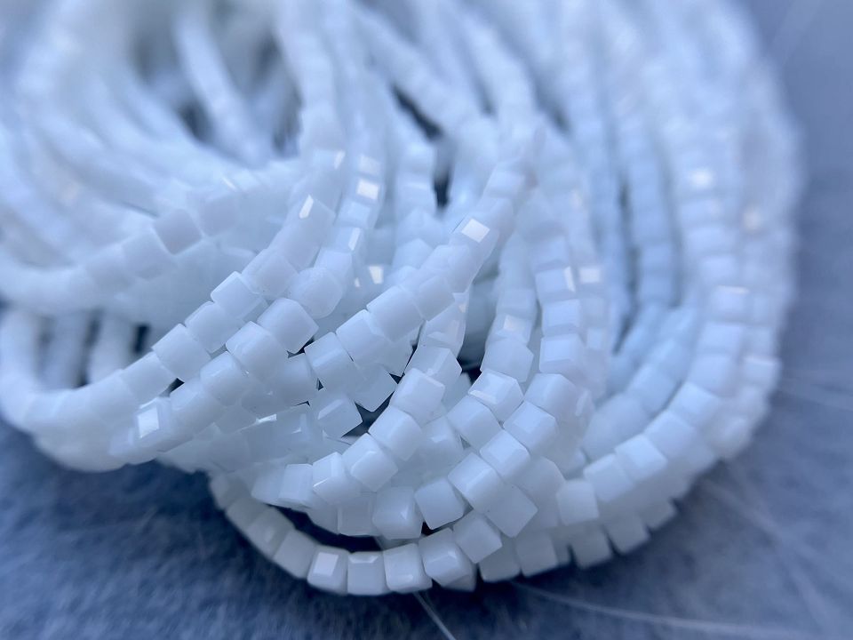 Кришталеві намистини, грановані. Розмір: 2мм, отвір: 0,8мм. Форма кубик. У нитці: 190+-5шт. Ціна за 1 нитку.