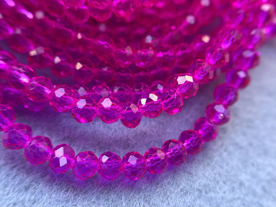 Кришталеві намистини, грановані. Розмір: 6*5мм, отвір: 1мм. Форма: рондель, сфера. У нитці: 87+-3шт. Ціна за 1 нитку.