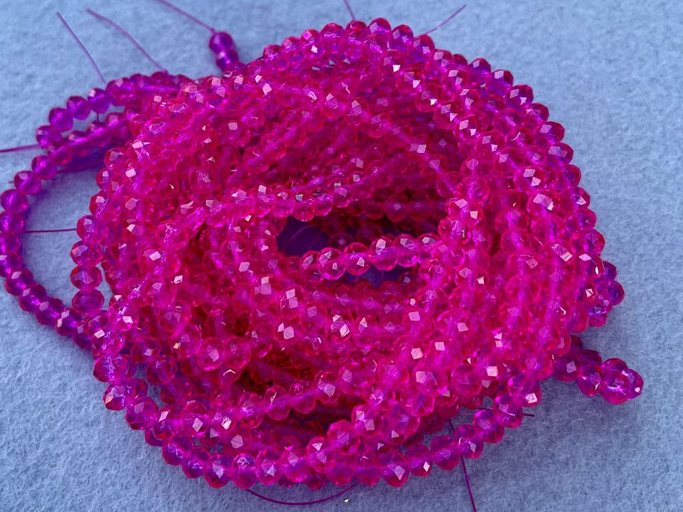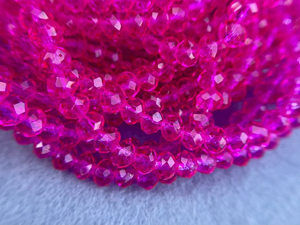 Кришталеві намистини, грановані. Розмір: 6*5мм, отвір: 1мм. Форма: рондель, сфера. У нитці: 90+-3шт. Ціна за 10 ниток.