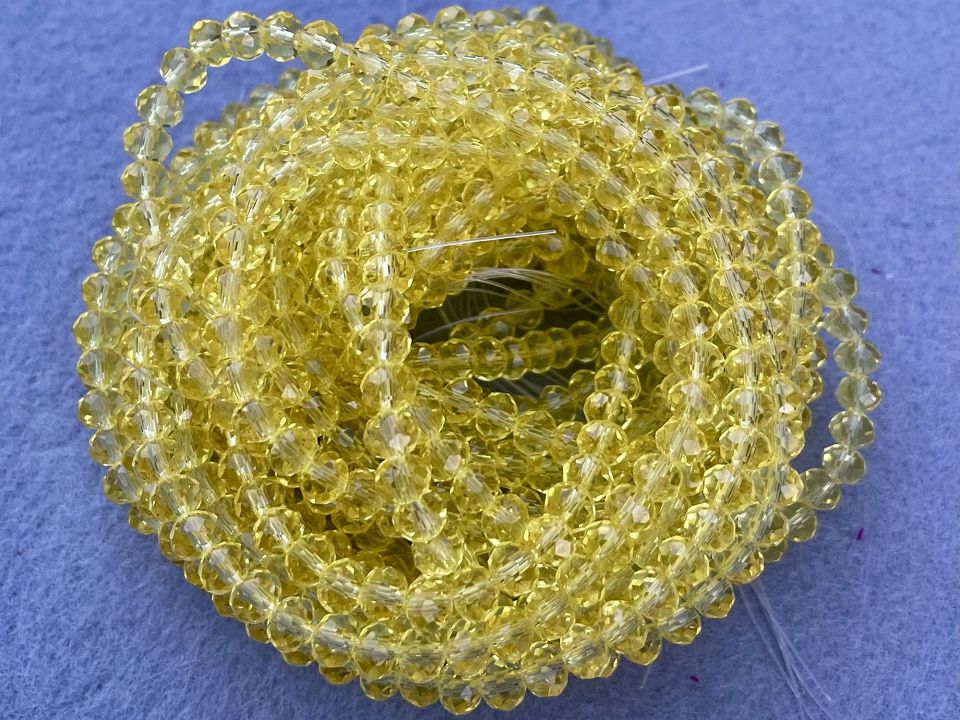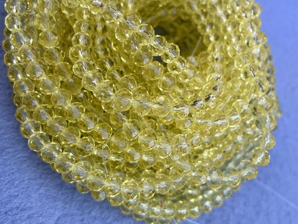 Кришталеві намистини, грановані. Розмір: 6*5мм, отвір: 1мм. Форма: рондель, сфера. У нитці: 90+-3шт. Ціна за 10 ниток.