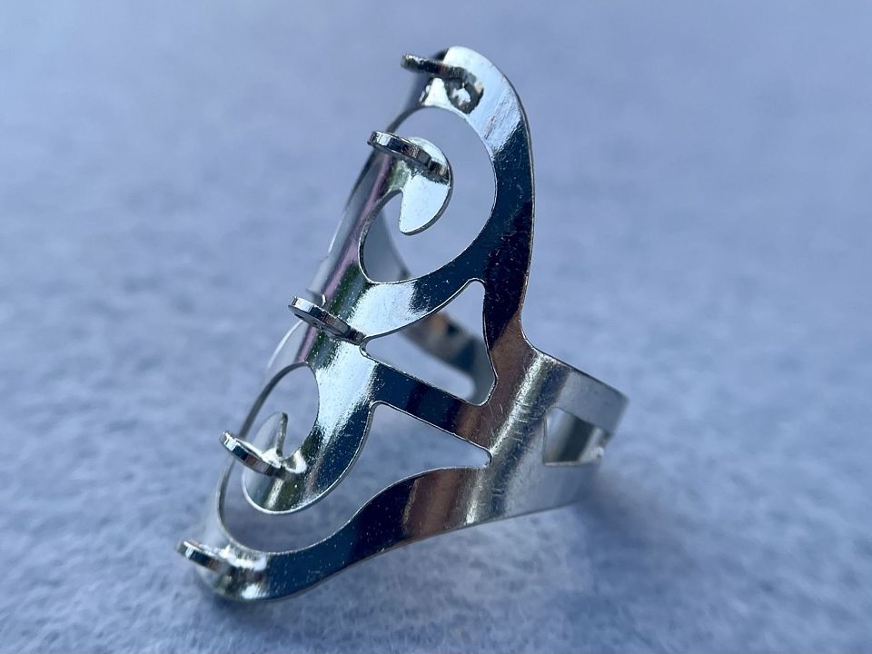Основа для кільця із металевого сплаву, з 5 петельками. Діаметр кільця: 17мм і розширюється на пару розмірів. Розмір кільця:20*34мм. Колір: сталь, ціна за 1шт.