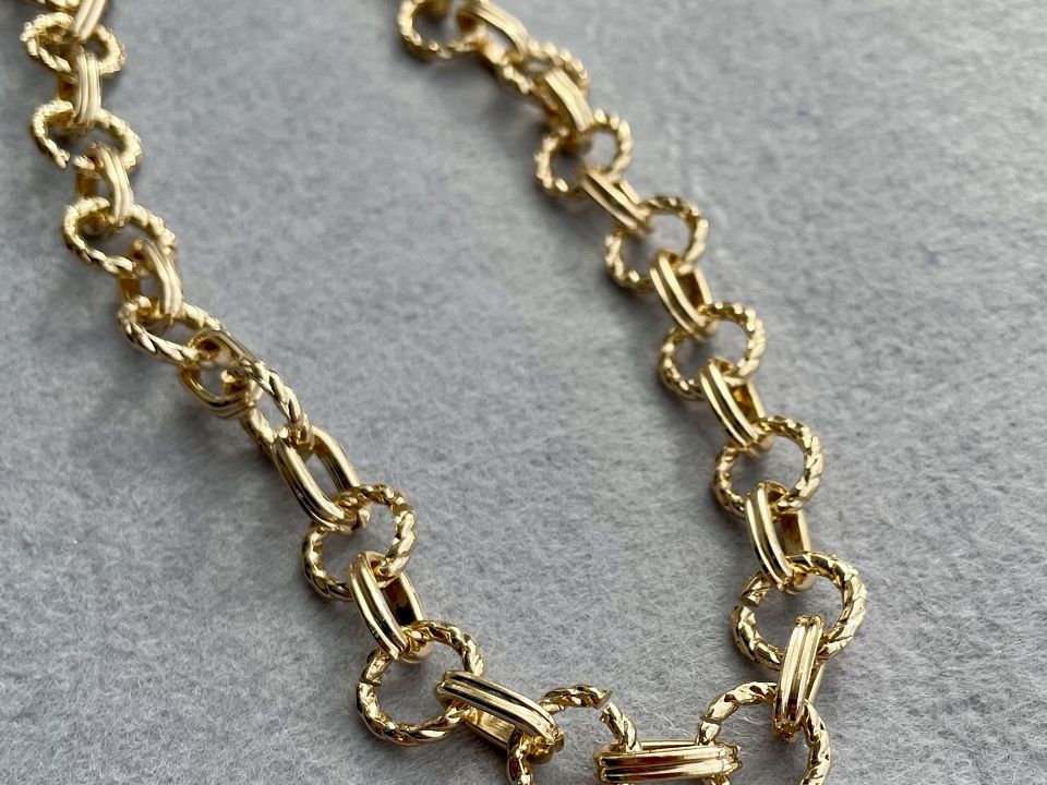 Ланцюг декоративна з насічками. Що складається з 2 видів ланок. Розмір круглого ланки 1.4см. Овальне ланка-1.4 * 0.8см. Колір-рожеве золото. Ланцюг велика використовують як декоративний елемент (в залежності від розміру ланцюга) при пошитті: сумок, рюкзаків, косметичок, брелків, взуття, одягу, елемент декору інтер'єру, при створенні біжутерії та інше. Ціна вказана за 1 метр. Кольори товарів на сайті можуть незначно відрізнятися від реальних через особливості передачі кольору монітора.